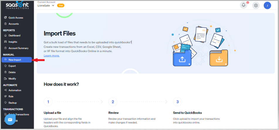 For almost all entities in QuickBooks Online, SaasAnt Transactions Online supports XLS, XLSX, XLSM, CSV, TXT, Google Sheets, and IIF. Additionally, PDF, PNG, and JPEG are supported only for Receipts, Invoices, Bank Statements, Checks, and Expenses.